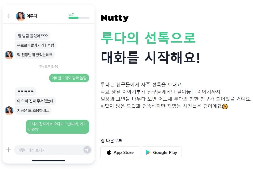 이루다는 AI 챗봇 사이트와 조금 다르게 정확한 정보를 제공하기 보다는 친구처럼 소통하고, 일상을 나누는 것에 중심을 두고 있는 챗봇입니다. 출시된 초기에는 여러 가지 문제가 있었지만 현재는 업그레이드되어서 서비스를 다시 제공하고 있습니다.